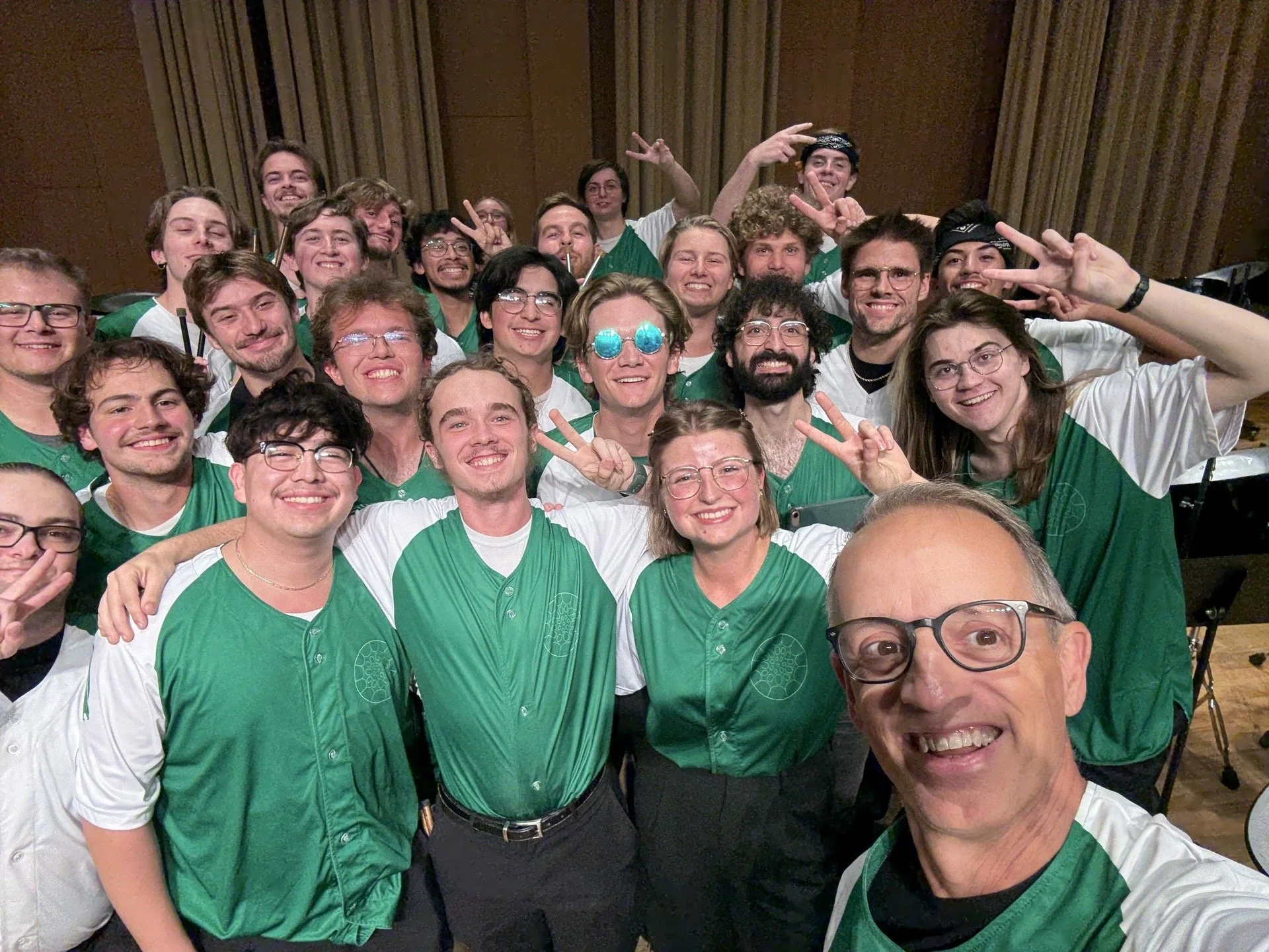 I directed the top steel band at UNT, the 2 O’Clock Steel Band, in the fall of 2024 and spring of 2025. This is a picture after one of our concerts in October of that year!